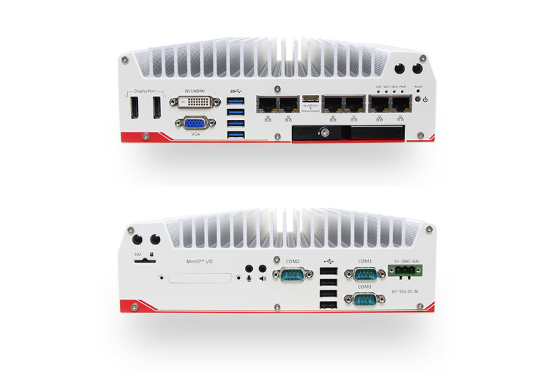 Intel® 6th-Gen Core™ i7/i5/i3 fanless rugged embedded computer with 6x GbE, MezIO™ interface & low-profile chassis