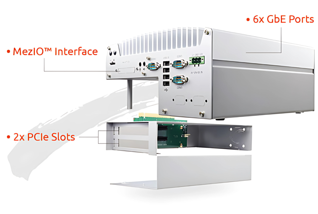 Intel® 6th-Gen Core™ i7/i5/i3 fanless rugged embedded computer with dual PCIe expansion cassette, 6x GbE & MezIO™ interface