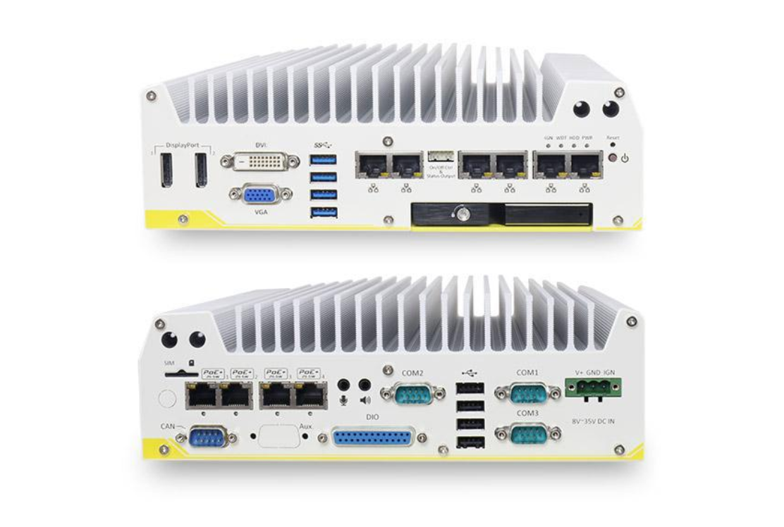 Intel® 6th-Gen Core™ i7/i5/i3 Skylake in-vehicle fanless embedded computer with 4x PoE+ Ports, DIO, CAN bus and RAID