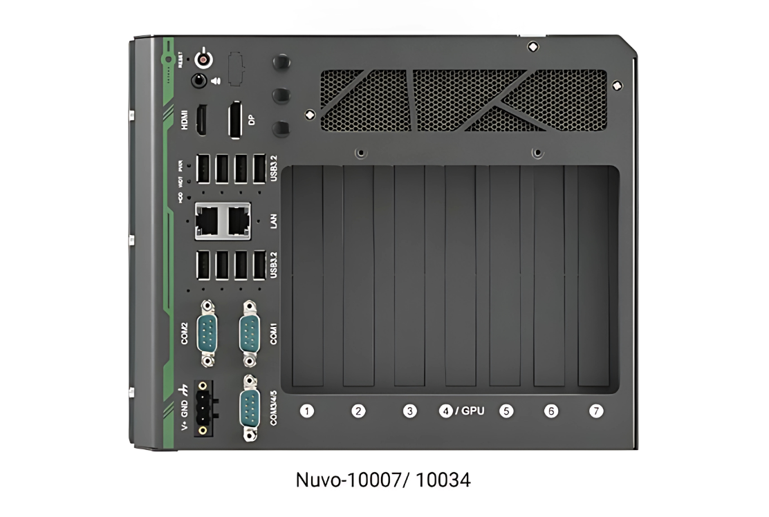 - Two x16 PCIe, three x8 PCIe and two x4 PCIe slots (Nuvo-10007)